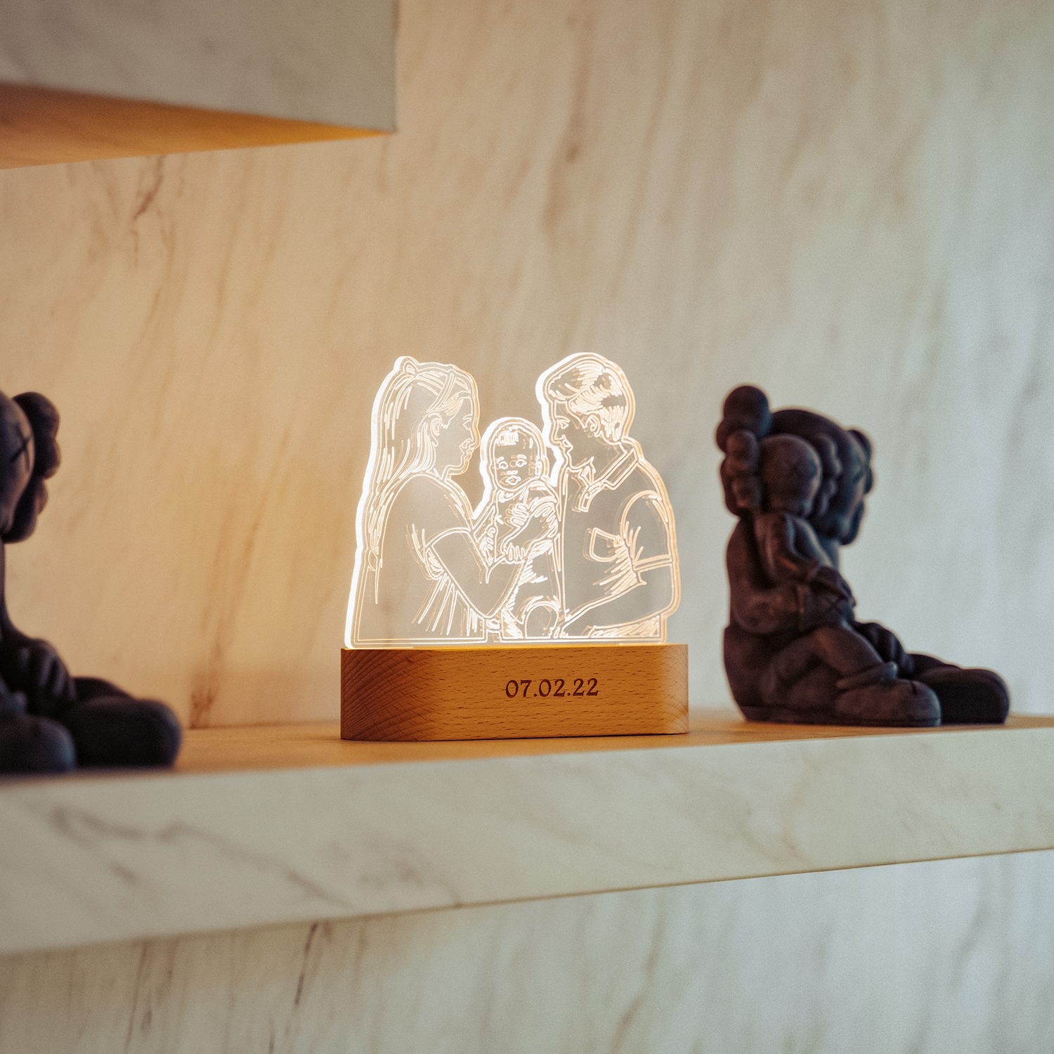 Your photo is carved into acrylic. Your message is engraved into the wood base, and delivered to your door ready to be gifted.