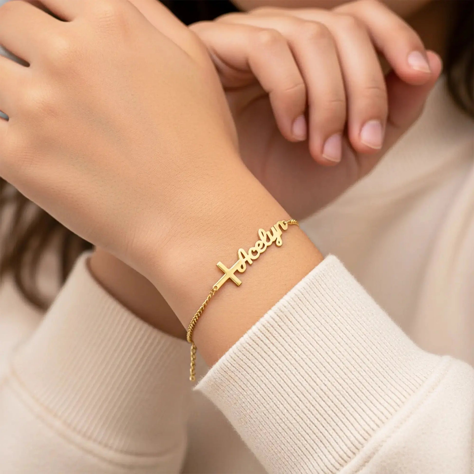 This cross bracelet is customized with your name to carry grace and strength with your calling. Made for those who walk boldly in faith, its's a timeless piece you'll never want to take off.
